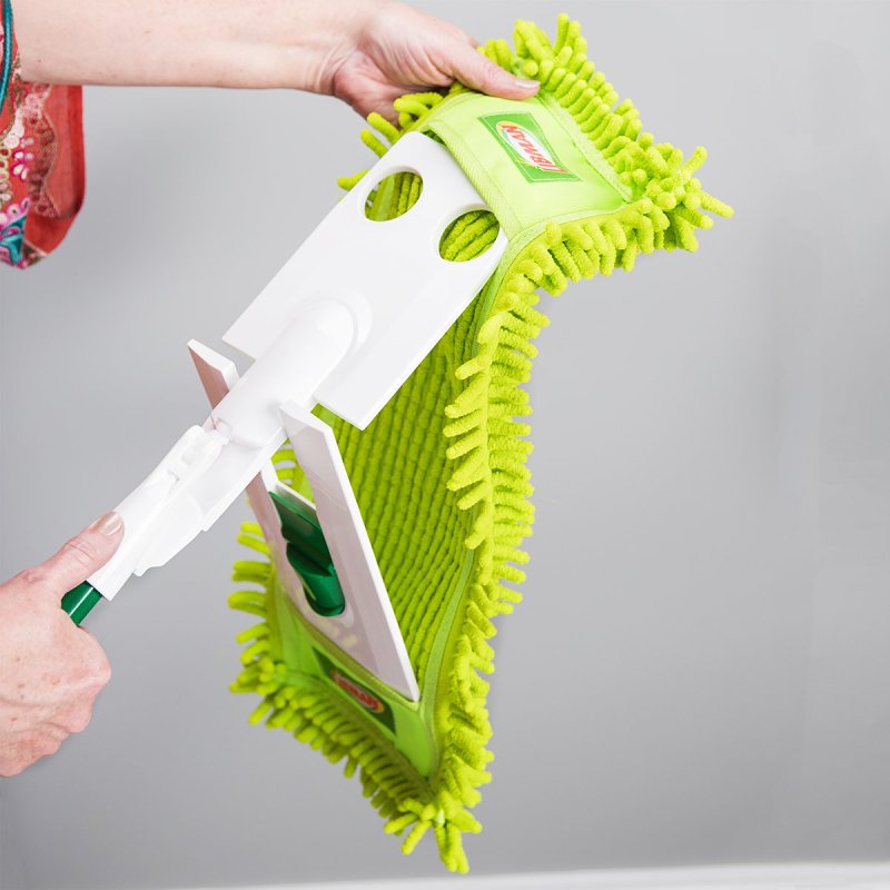 The microfiber dust mop makes dust mopping easy and has fingers to pick up dust and the allergens in it to protect your home from dirt and germs. Great for hardwood floors and other hard surfaces. Easy to change cleaning pad is machine washable and reusable. Removes over 99% of staphylococcus aureus and E. coli on ceramic tile and wood floors when used with water*. Specially designed comb to remove the dust, dirt, and pet hair you pick-up. A fantastic duster mop.