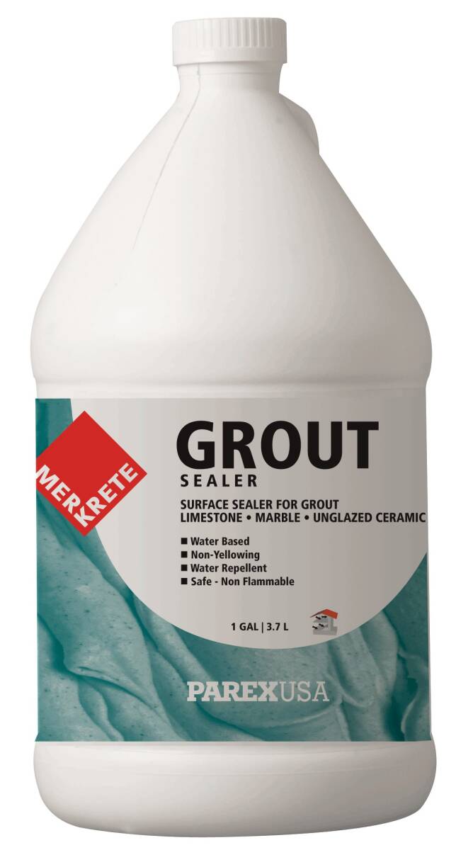 Merkrete Grout Sealer is a penetrating silicone sealer for new or old Portland cement grout. It is also recommended for concrete, porous stone and masonry surfaces.