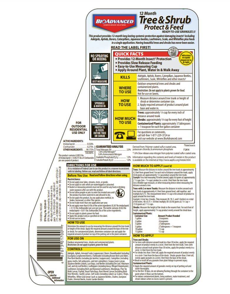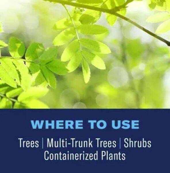 Kills Adelgids, Aphids, Borers, Japanese Beetles (adult), Leafminers, Scale, and Whiteflies, and prevents new infestations for up to 12 months. Works by slow-release feeding, which improves plant health.
