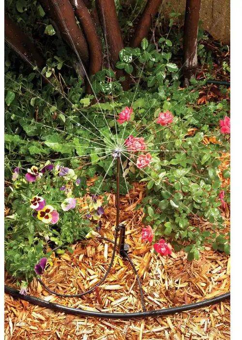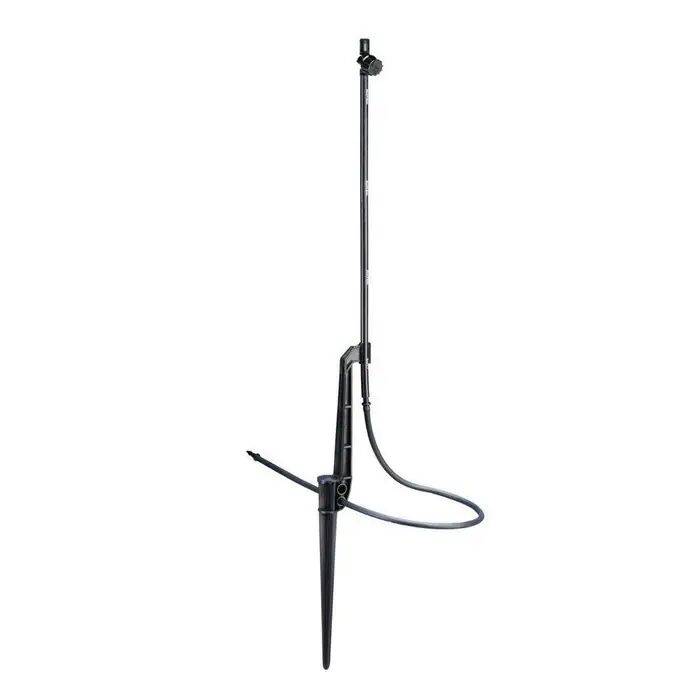 Apply drip watering efficiency in more places around your landscaping with this versatile staked riser with adjustable micro spray flow and height. The riser adjusts up to 18 in. H and the spray adjusts from 0 ft. - 10 ft. throw, allowing you to direct water exactly where you need it in a wide variety of planting areas. It is ideal for taller plants such as shrubs and bushes well as for use in flower beds and ground cover where you may want broader coverage. Includes a sturdy 8-in. stake plus 36 in. L of 1/4 in. tubing with barbed fitting for quick attachment to 1/2 in. drip irrigation tubing.