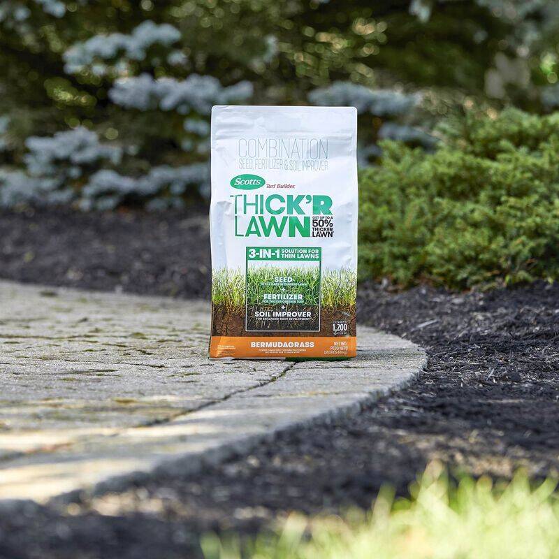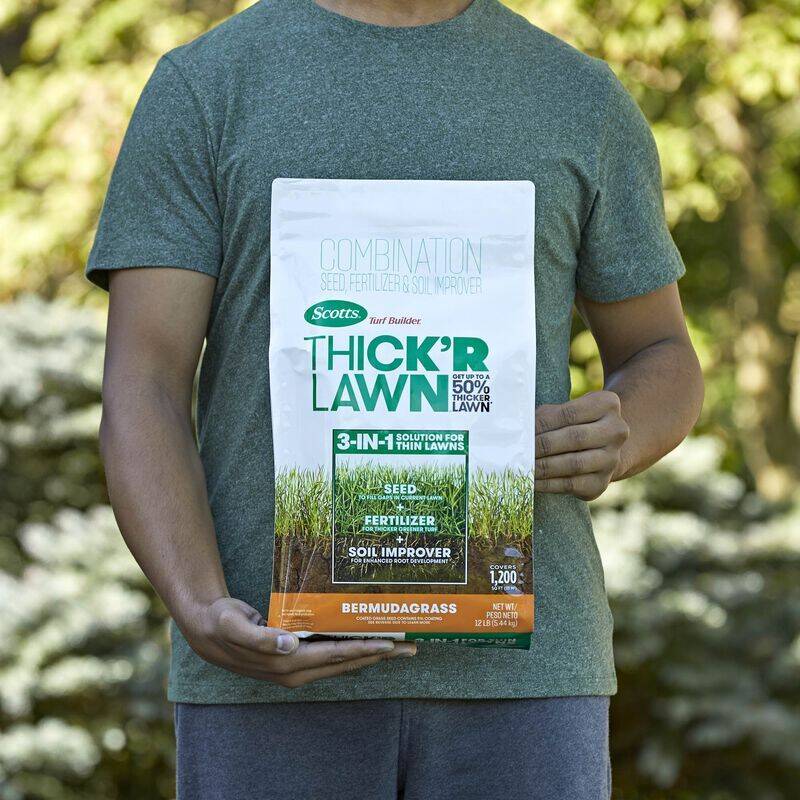 - Scotts® Turf Builder® THICK'R LAWN® Bermudagrass is a 3-in-1 solution uniquely formulated to help turn your thin lawn into a thicker, greener lawn with stronger roots