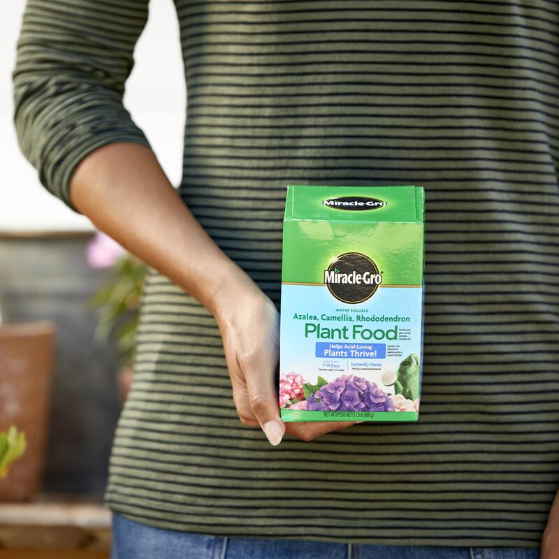 Help acid-loving plants like azalea, camellia, gardenia, hibiscus, holly, hydrangea, orchids, rhododendron, and many others thrive with Miracle-Gro® Water Soluble Azalea, Camellia, Rhododendron Plant food. Our formula instantly feeds acid-loving plants for lush foliage and beautiful blooms; simply apply every 1-2 weeks with a Miracle-Gro® Garden Feeder or any watering can to promote quick results. Grow beautiful plants with Miracle-Gro®.