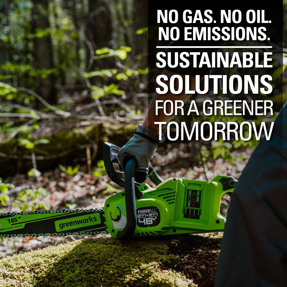 - Two Greenworks 24V POWERALLâ„¢ batteries combine for 48V of exceptional -better than gas power - without leaving the 24V battery platform