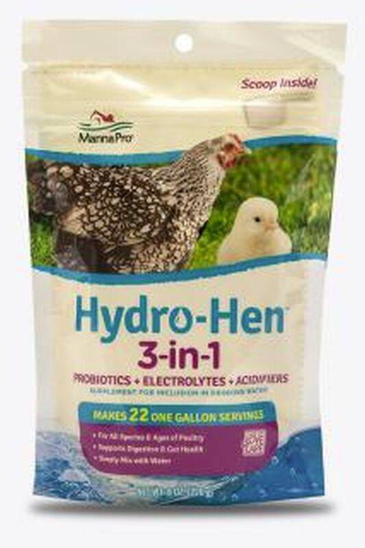 Everything they need in one scoop. Hydro-Hen contains probiotics, electrolytes, and acidifiers to provide hydration and gut health when your birds need it most. Designed for inclusion in the drinking water of all species and ages of poultry (chickens, ducks, turkeys, geese, and other domestic poultry and waterfowl), it provides important nutrients and probiotics to support digestive health and hydration.
