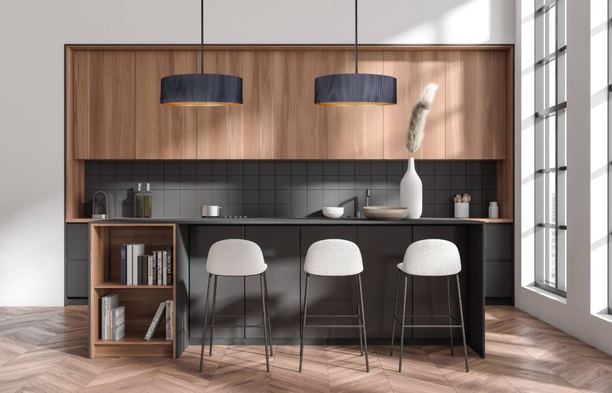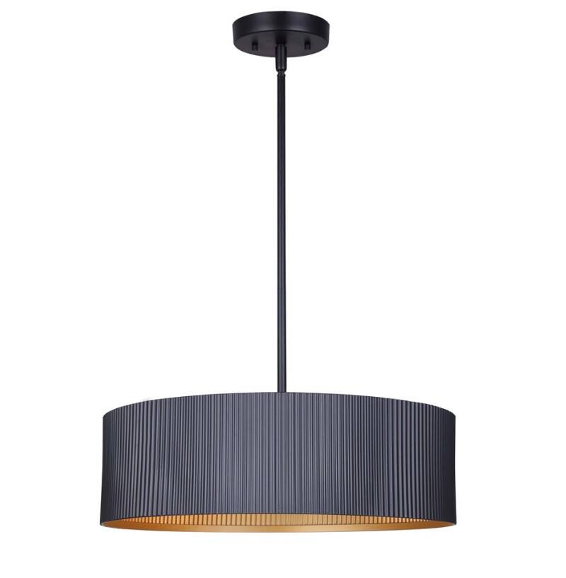 Add an industrial-inspired edge over your kitchen island with REXTON. REXTON's corrugated metal shade comes in a sleek, modern matte black exterior finish with an interior painted in the perfect shade of gold. Its adjustable downrod allows you to hang at your desired height, and its three lights bounce off the painted gold leaving you with task lighting and ambiance.