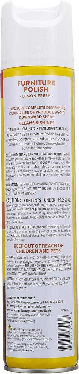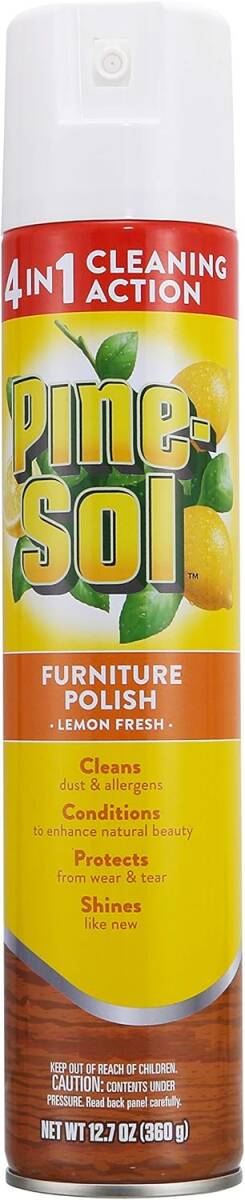Pine-Sol Furniture Polish, 12.7 oz Net Content, Liquid Form, Lemon Odor/Scent, Aerosol Can Container, Spray Application Method, Applicable Materials: Wood