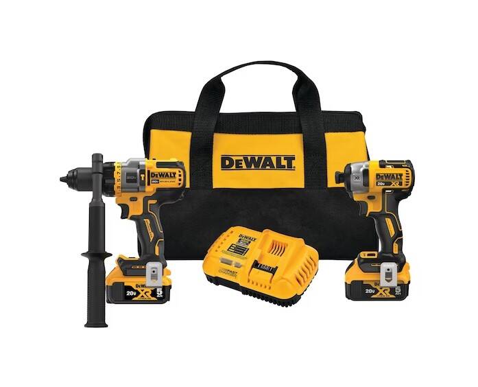 | Includes | (1) DCD99B Brushless Cordless Hammer Drill/Driver, (1) DCF887 Brushless Cordless Impact Driver, (2) DCB205 Lithium-Ion Battery, (1) DCB118 Fast Charger, (2) Belt Hooks, (1) Kit Bag |