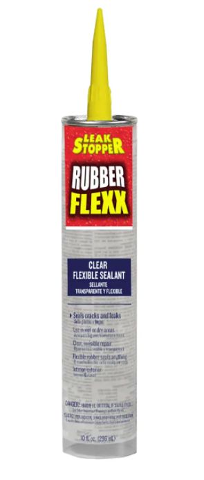 Rubber Flexx Clear is a crystal clear, flexible sealant and adhesive. It is an extremely versatile product and has tremendous adhesion to most materials. The cured seal is extremely durable, elastic, UV stable and 100% waterproof. Stops water, moisture and air leaks. Use on most projects including; roofs, gutters, siding, doors, windows, RV's, HVAC, PVC, fiberglass, masonry and metal. Adheres to wet/damp surfaces and is paintable.
