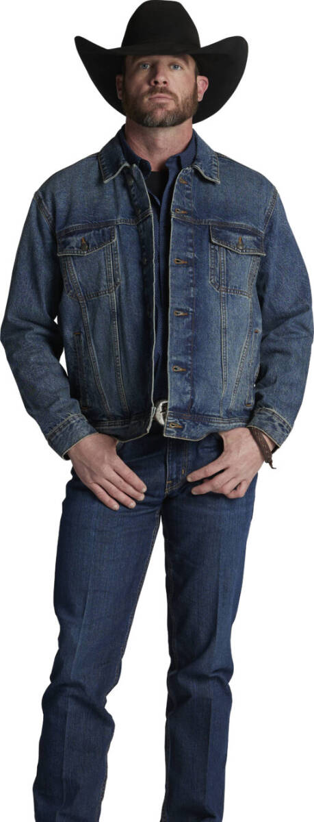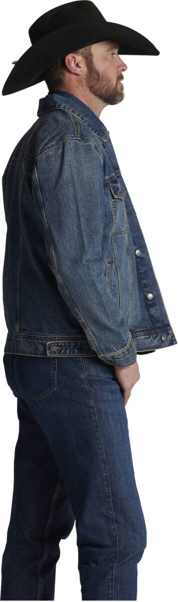 100% Cotton Denim, Tulsa Denim Jacket by Justin has 2 covered front chest pockets, and 2 bottome welt pockets.