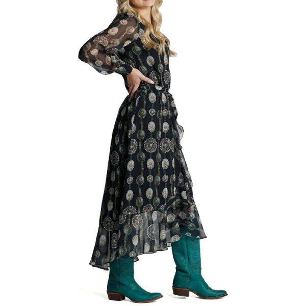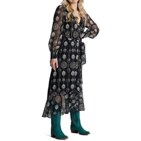 Sway with the Sunset, Strut with the Saddle - Unleash Your Inner Cowgirl in our Western Wrap Maxi Dress! Boasting a flattering wrap design and a sweeping maxi length, this Black and Concho Turquoise Wrap Maxi Dress is perfect for both casual and more formal occasions!