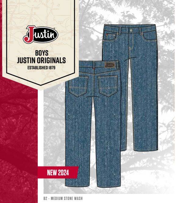 Justin Boys Originals- The B2 Youth Slim Straight Jean features a slim hip and thigh, straight leg, and high rise cut. These jeans come in a Medium Stone Wash color.