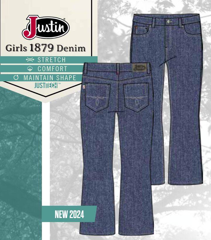 Justin Girls 1879 Denim features stretch and comfort material that maintains shape. These G3 jeans are a midrise bootcut pant and come in a Medium Stone Wash color.