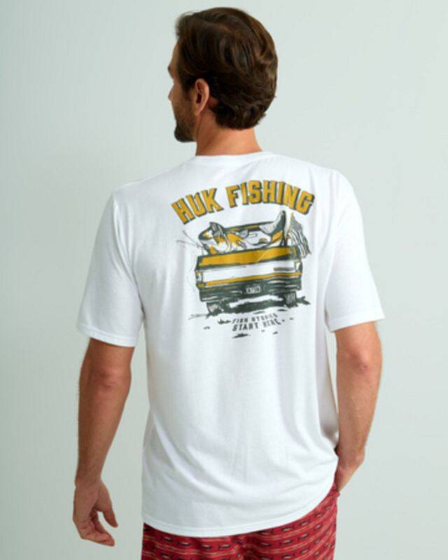 The Huk Gone Fishin Tee is the perfect choice for any anglers wardrobe. Crafted with a 50/50 cotton/polyester blend, it provides all-day comfort and top-notch performance.