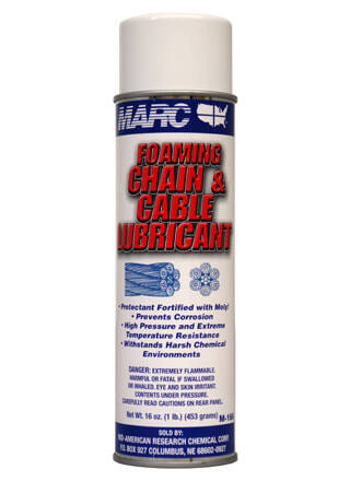 Provides a thick foam that clings to vertical surfaces. As foam breaks, lubricant penetrates into wire rope and chain mechanisms. Deposits a Molybdenum disulfide-based grease, and proides surfaces with superior lubricating properties. Protects against high temperature and extreme pressure environments. Grease will not break down, fly off or wash away with water or steam. Retains lubricating properties under heavy shock load, acidic environments and salt spray. Prevents surface oxidation and corrosion. Super high tack formula provides active lubricant dispersion while equipment is in operation.