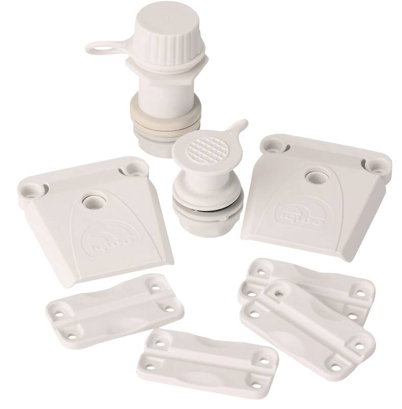 IGLOO Universal Parts Kit, White, Dimensions: 8-1/2 in L x 1-1/2 in W x 11-1/2 in H, Suitable for: 25-165QT, 50-165QT, 25-70QT, 50-165QT Igloo Coolers, Includes: (2) Pair of Hinges (4 Each), (2) Latches, (2) Latch Posts, (1) Triple Snap Drain Plug, (1) Threaded Drain Plug, (22) Screws