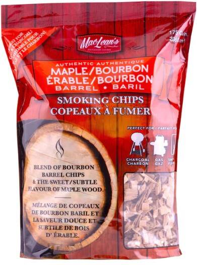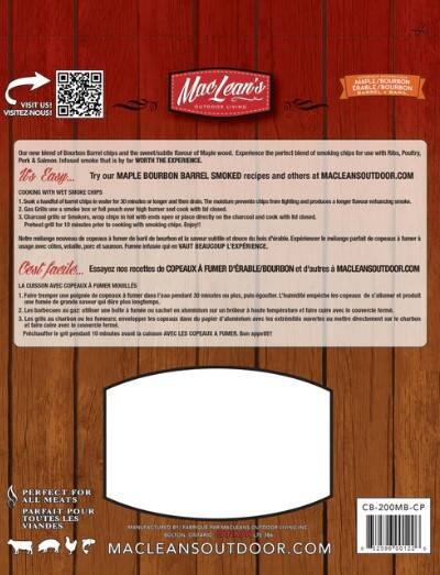 MacLean's Authentic Maple/Bourbon Barrel Blend BBQ Smoking Chips are cut from retired Bourbon Barrels used to slowly age many of the best brands of Kentucky Bourbon then blended with 100% natural Maple Wood to give your meals a sweet flavor comparable to honey or caramel.