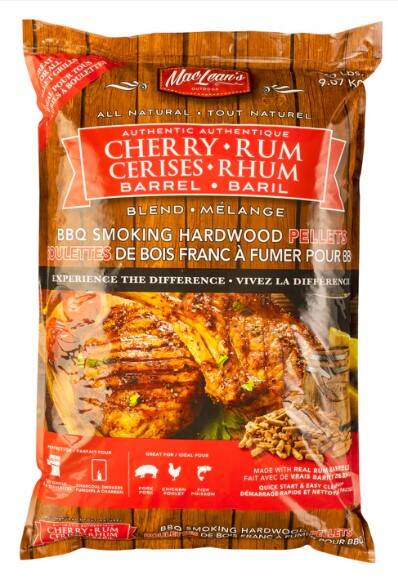 MacLean's Authentic Cherry/Rum Barrel Blend BBQ Smoking Pellets are cut from retired Rum Barrels used to slowly age many of the best brands of Caribbean Rum then blended with 100% natural Cherry wood, giving your food a mild fruity taste with a hit of Rum flavor.