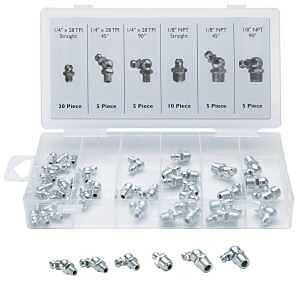 Includes (10) 1/8 in NPT Straight (5) 1/8 in NPT 45 deg (5) 1/8 in NPT 90 deg (20) 1/4 in x 28 TPI Straight (5) 1/4 in x 28 TPI 45 deg (5) 1/4 in x 28 TPI 90 deg