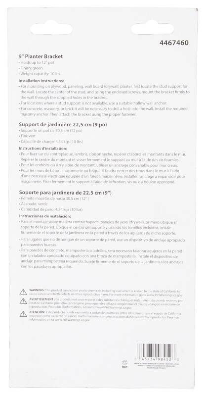 Holds up to a 12 in pot. Easy installation. 9 in planter bracket.