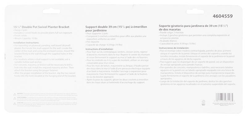 15-1/2-Inch White Double Pot Swivel Planter Bracket