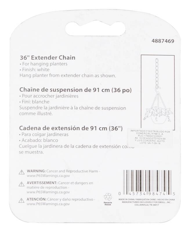 Use to extend length of hanging pots. Size 36" - Carded Finish=White