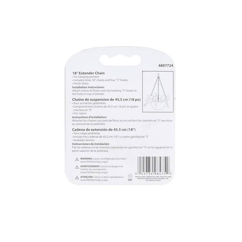 Includes (3) 18 in Chains (4) S-Hooks