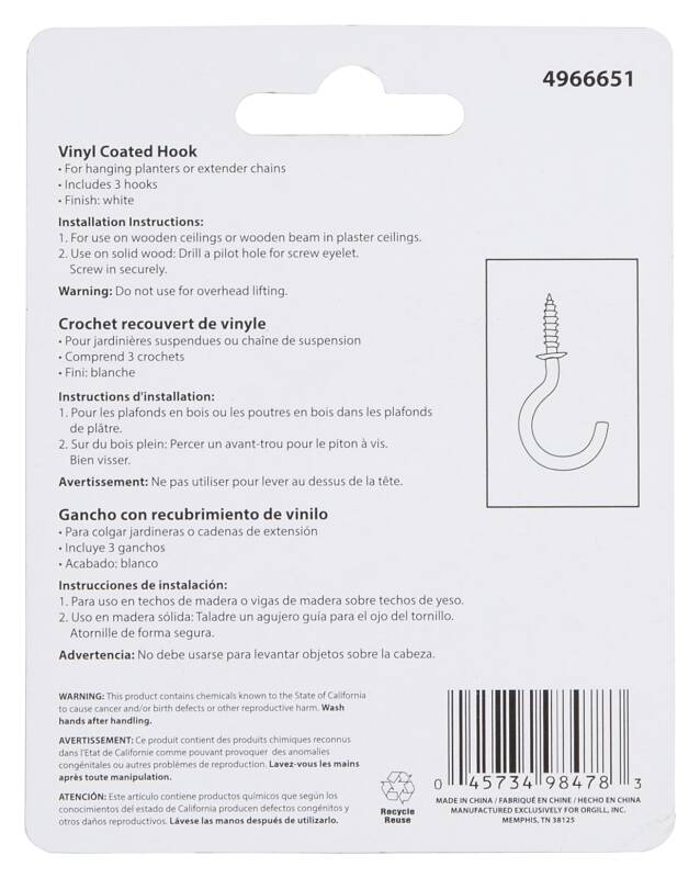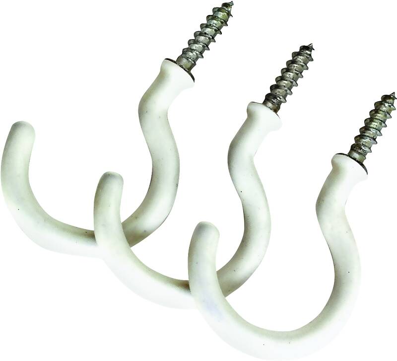 1-27/64 X 2-3/4 - Inch White Steel Screw In Storage Hook Wall Mount