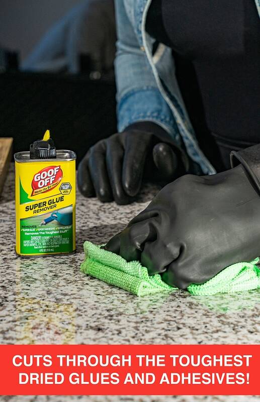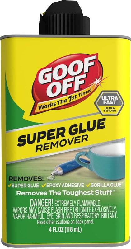 - Goof Off Super Glue Remover cuts through the toughest cured adhesives and glues