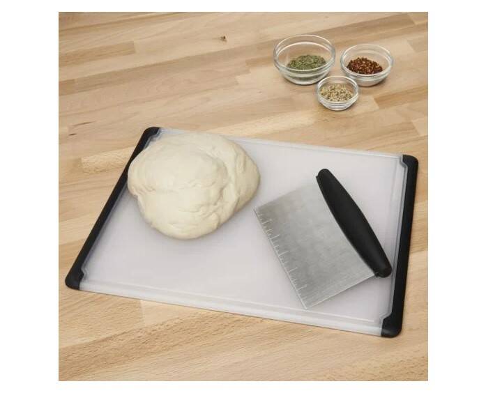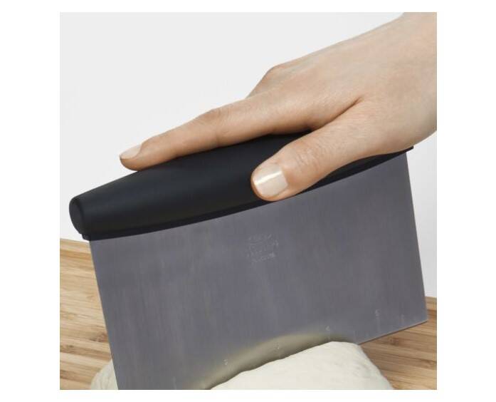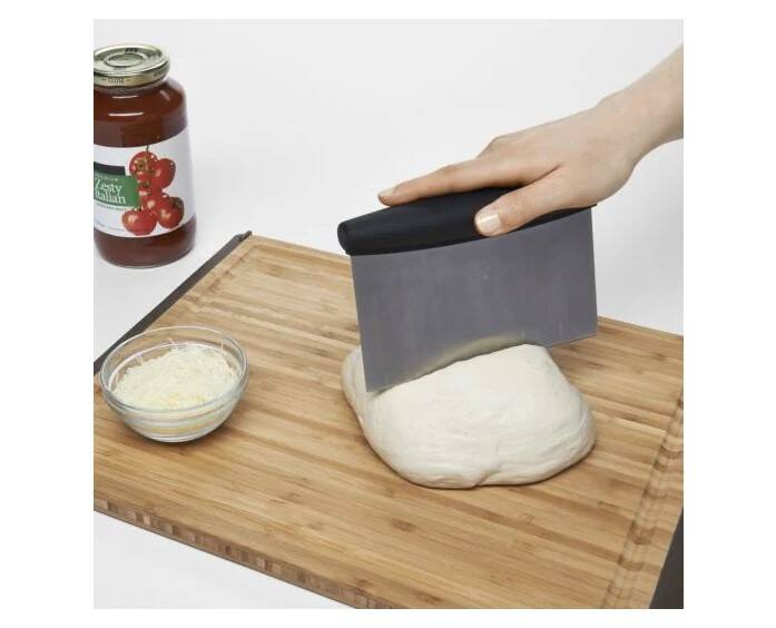 OXO Stainless Steel Multi-Purpose Scraper & Chopper is a great tool for portioning and scraping dough, as well as lifting cookies from a cookie sheet, cutting brownies and chopping firm vegetables like celery. Convenient measurement markings allow you to evenly section dough for baking.