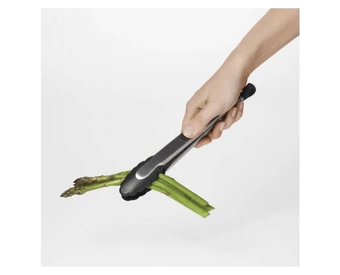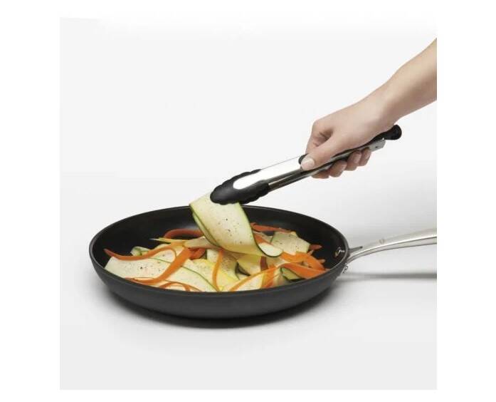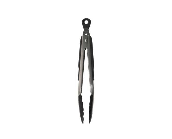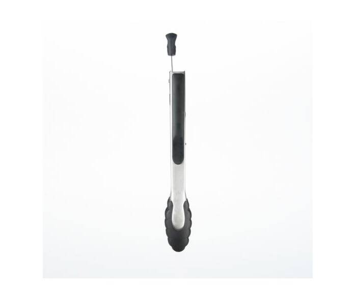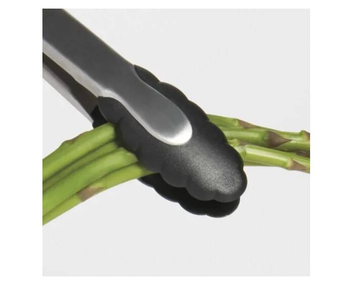 The Tongs with Nylon Heads are made of sturdy stainless steel, with soft, comfortable, non-slip grips. The scalloped nylon heads are safe for non-stick cookware, and securely hold food. Heat resistant to 400°F. Tongs lock closed for convenient storage.