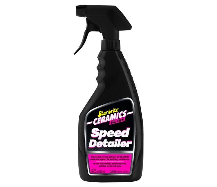 Star briteĀ® Ceramics Speed Detailer is the fastest way to add the protective power of ceramics to your surfaces. An ideal wipe down for all of your vehicles or vessels after a day on the water, road or in the woods. Speed Detailer uses SiO2 ceramic tech to add shine, enhance water beading, and provide a long-lasting barrier to help prevent UV damage.