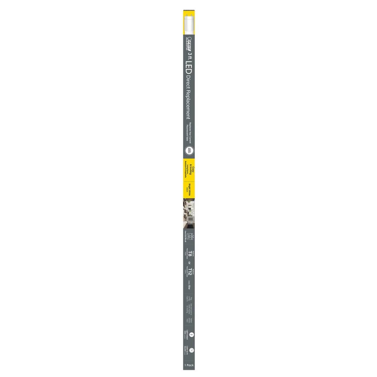 Feit Electric’s 16-watt (25/30 -watt Equivalent) Direct Replacement (Type A) Non-Dimmable Linear LED Tubes replace F17T8 or T8 and F20T12 or T12 fluorescent and LED tubes. They work with most existing ballasts for quick and easy plug-and-play installation, with no rewiring necessary. Each Linear LED light produces 1450 lumens, while using less energy than fluorescents. These warm 3000K Bright White lights create a welcoming feeling for both residential and commercial spaces. Use them in bedrooms, living rooms, restaurants, hotel lobbies, or environments you want to feel comfortable and relaxed. Enjoy up to 36% energy savings and lower maintenance costs compared to traditional fluorescent linear lights. T36/830/LEDG2/RP lights turn on instantly, offering flicker-free full illumination with no warmup time compared to fluorescent tubes. They are mercury-free, with a shatter-resistant coating for safe and easy disposal. Each high-quality bulb offers accurate color-rendering, for more vibrant, true-to-life colors. Lower heat emission extends the life of the tube and ends do not turn black or burn with age. The estimated energy cost is only $1.93 per year. Switch to Type A LED linear lights for your space and get up to 50,000 hours of superior light. That's 45.7 years based on 3 hours of daily use.