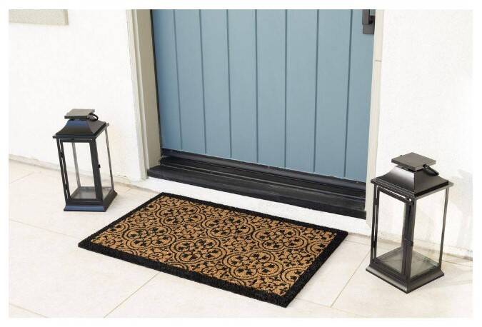 18-Inch x 30-Inch Black Encaustic Coir Door Mat