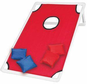 Test your skill with this challenging toss game. Perfect for the backyard, park, camping and more. Select a throwing distance and toss the bean bags into the hole to score. Includes 4 bean bags and corn hole target. Easily can be taken apart to go anywhere. Family fun game great for all ages.