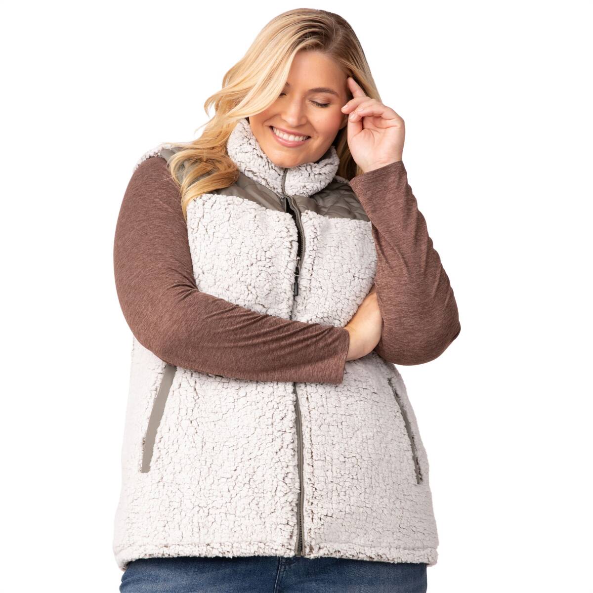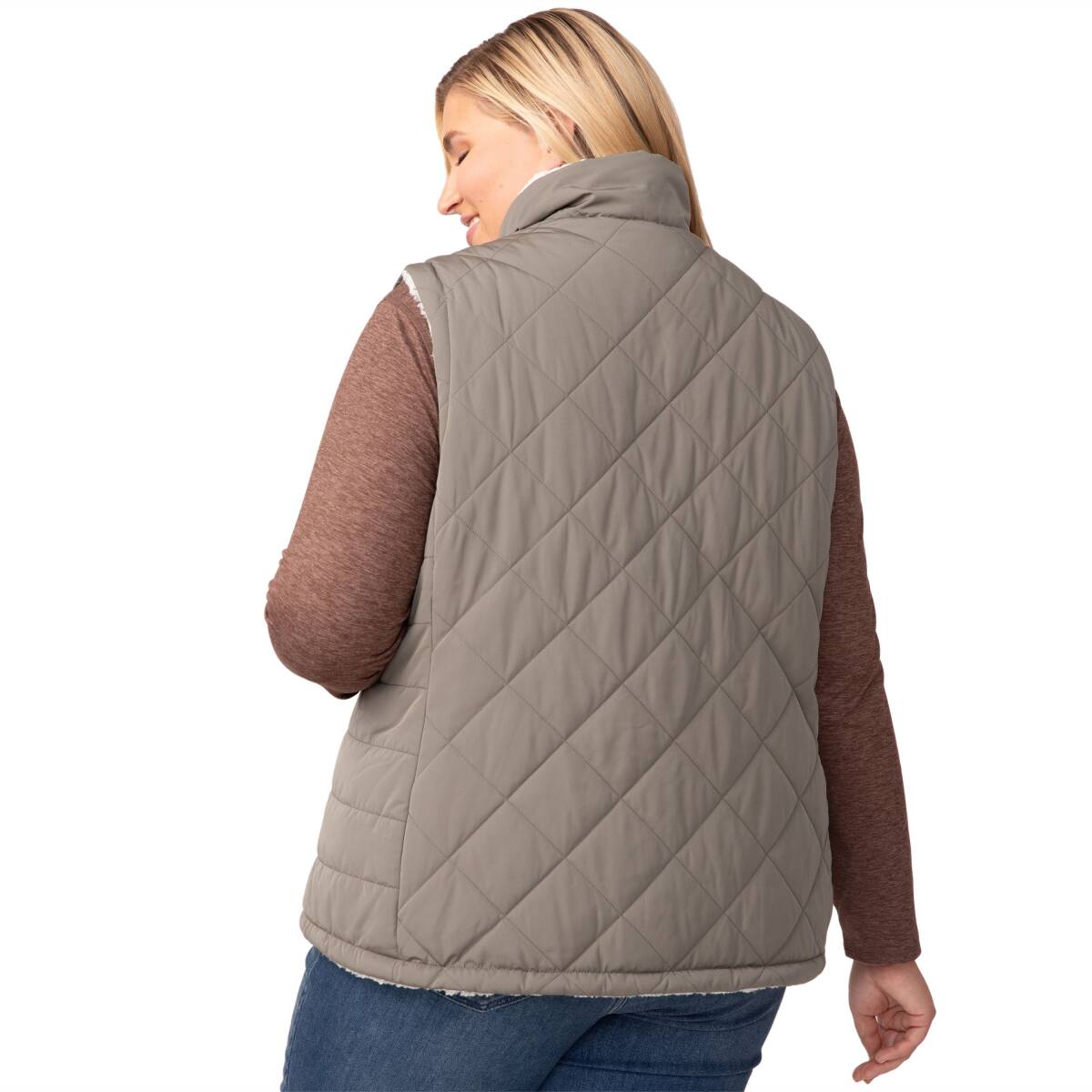 Prepare to take on the great outdoors with this versatile and stylish vest that complements your active lifestyle. You’ll look good and feel good knowing it’s crafted with a 100% recycled poly shell fabric, and REPREVE® high-quality synthetic fill made from recycled plastic bottles. And the best part? It's like getting two vests in one! With its reversible design, you can switch from a cozy two-tone Sherpa to a chic quilted overlay, matching your mood and outdoor setting with ease. It's designed for your comfort and protection: The wind-resistant feature keeps you shielded from chilly gusts, and the stand collar adds an extra layer of protection against the elements—so you can focus on conquering the great outdoors.