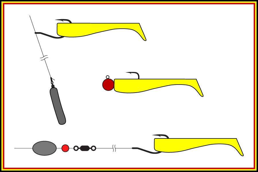 • Use different weight heads to swim the bait deep or shallow and different sized hooks in the heads will allow use in various body sizes