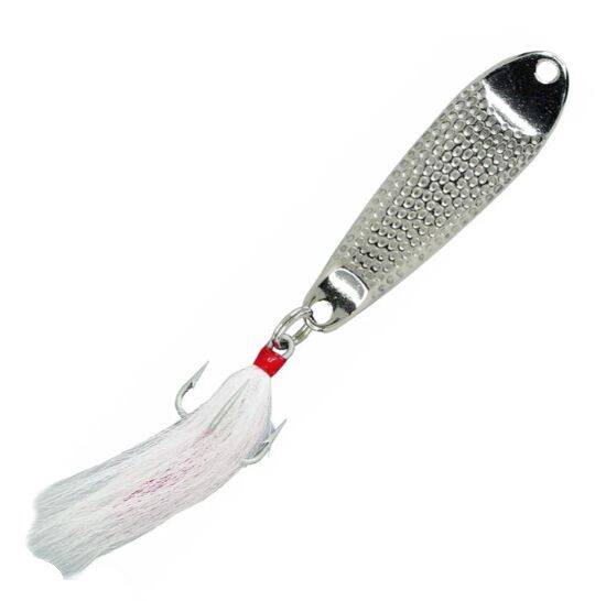 3.5-Inch Shorty Hammered Spoon With Treble Hook And White Bucktail