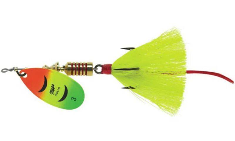 The Mepps Aglia spinner is the original French spinner. It is the World's #1 Lure. More trophy fish have been caught on the Mepps Aglia than any other lure. The Mepps Aglia is extremely popular with fishermen world-wide because it will catch just about any freshwater fish and many species of saltwater fish. Lure size is important. The rule of thumb is use smaller lures to catch smaller fish and larger lures to catch larger fish. Keep in mind plain spinners present a smaller profile than dressed spinners, so they will appear smaller to the fish. This makes them perfect for panfish and small stream trout. Fishing with dressed spinners can produce larger fish, but, when stream trout fishing, you will probably catch more fish using plain spinners.