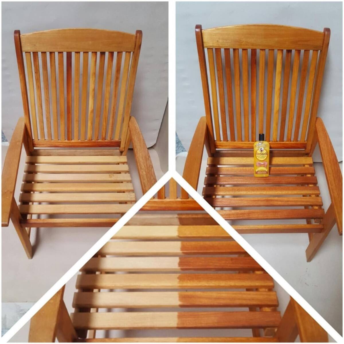 SunShield is a unique blend of carnauba wax, beeswax, and orange oil combined with an extremely high quality UV inhibitor. SunShield is designed to protect both the wood finish and wood color from sun fade. SunShield enhances the natural beauty and depth of grain in indoor and outdoor wood furniture. Some indoor antiques or wood furniture exposed to sunlight through a glass window (both directly and indirectly) can quickly lose color, fade, or lighten. SunShield greatly reduces and even stops this color fade and sun damage when used regularly. Outdoors, Sunshield is designed to condition and keep teak and other tropical hardwood furniture from drying, fading, and oxidizing due to exposure to the sun.
