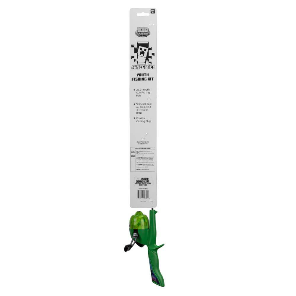 Minecraft is the best selling game of all time and now your little angler can create their own adventure with the Minecraft Youth Kit. The Kid Casters youth kit features a 29.5-inch all-in-one rod and reel, plus an 8-bit fish casting plug. The spincast reel has a 3.1:1. gear ratio, and comes pre-spooled with strong 6-lb monofilament line. The durable fiberglass rod has a light action, perfect for practice casting and earning achievements.