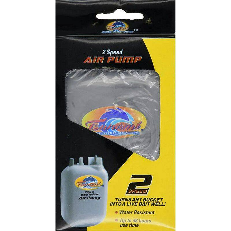 TSUNAMI™ 2-Speed Air Pump will keep your bait alive and active. With its water resistant design, bubble diffusing air stone and quiet, energy saving 2-speed motor, you'll turn any bucket or container into a live bait well.