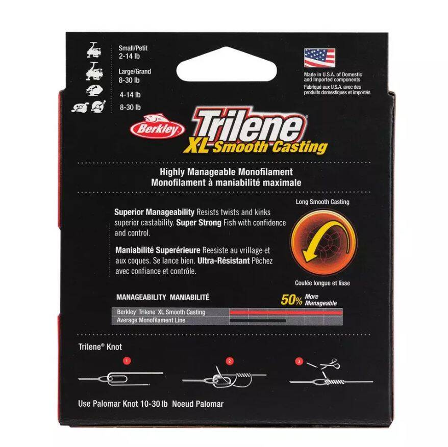 The Best Trilene XL Ever! Stronger and Smoother than ever, this improved formula has 20% greater knot strength and over 50% greater wet strength. 50% more manageable than average nylon monofilaments for smooth casting and maximum manageability.