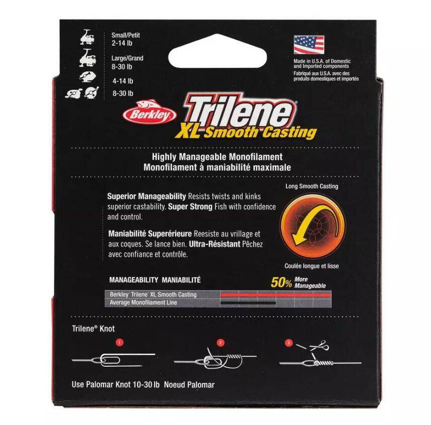 The Best Trilene XL Ever! Stronger and Smoother than ever, this improved formula has 20% greater knot strength and over 50% greater wet strength. 50% more manageable than average nylon monofilaments for smooth casting and maximum manageability.