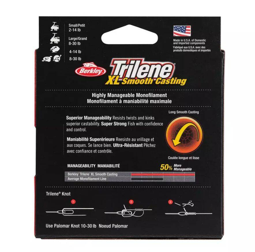 The Best Trilene XL Ever! Stronger and Smoother than ever, this improved formula has 20% greater knot strength and over 50% greater wet strength. 50% more manageable than average nylon monofilaments for smooth casting and maximum manageability.