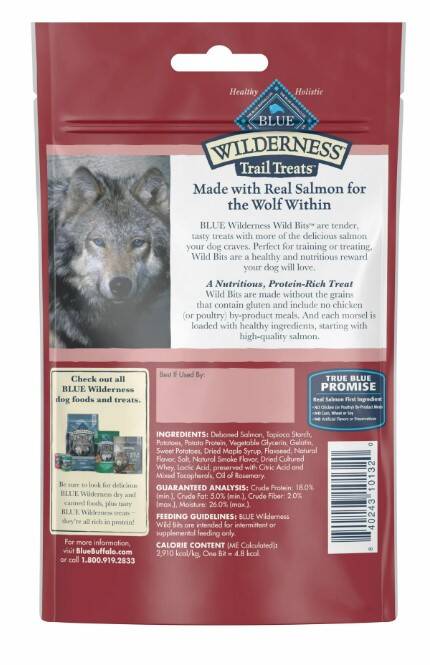 BLUE Wilderness Wild Bites feature protein-rich salmon blended with the finest natural ingredients enhanced with vitamins and minerals to satisfy the wolf inside your dog. Support his strength, health and vitality with delicious Wild Bites.
