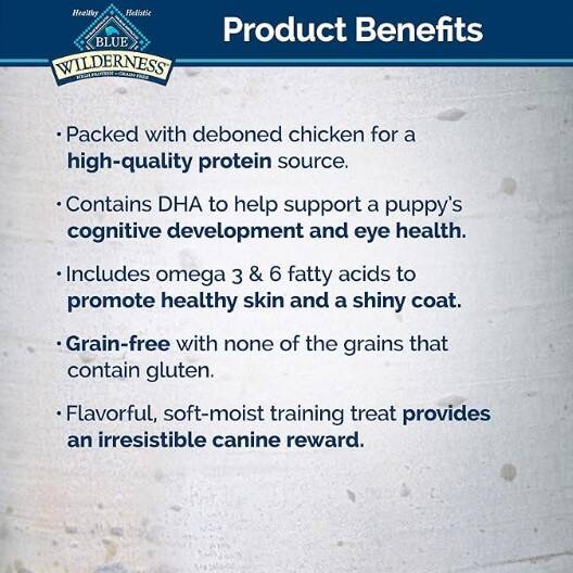 BLUE Wilderness Wild Bites feature protein-rich chicken blended with the finest natural ingredients enhanced with vitamins and minerals to satisfy the wolf inside your dog. Support your dog’s strength, health and vitality with delicious Wild Bites.