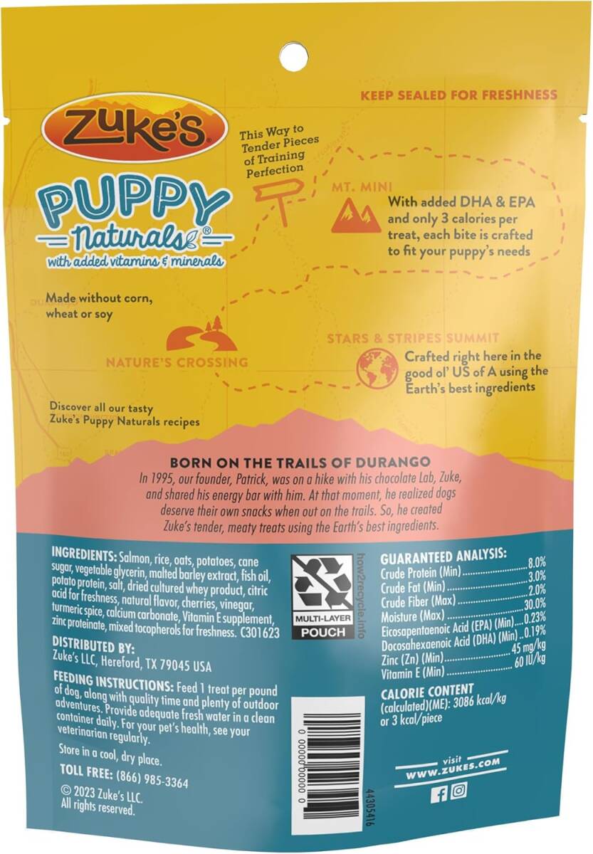 • Zuke’s puppy treat recipes are crafted in the USA with the Earth’s best ingredients