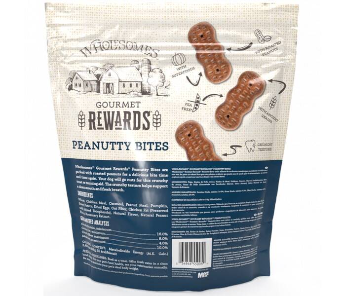 3-Pound Bag Wholesomes Gourmet Rewards Peanutty Bites Dog Biscuits