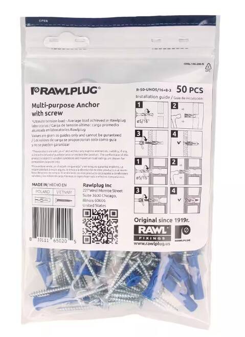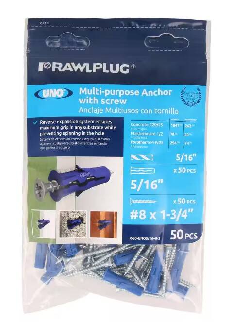 Uno Multi-Purpose Drywall Anchor 5/16-Inch 8-Count