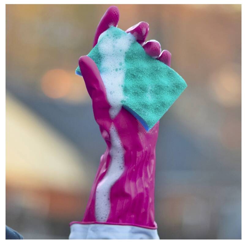 Worry-free cleaning at your fingertips with the #1 reusable household gloves*. Our Playtex Living Gloves are durable, reusable, and provide the ultimate protection from water and harmful household chemicals. Designed with a Drip-Catch Cuff, the extra long pair is specially designed to prevent back drip and splashes on clothing and skin. They’re complete with Ultra-Fresh technology to inhibit bacteria growth and lingering odors on the glove.